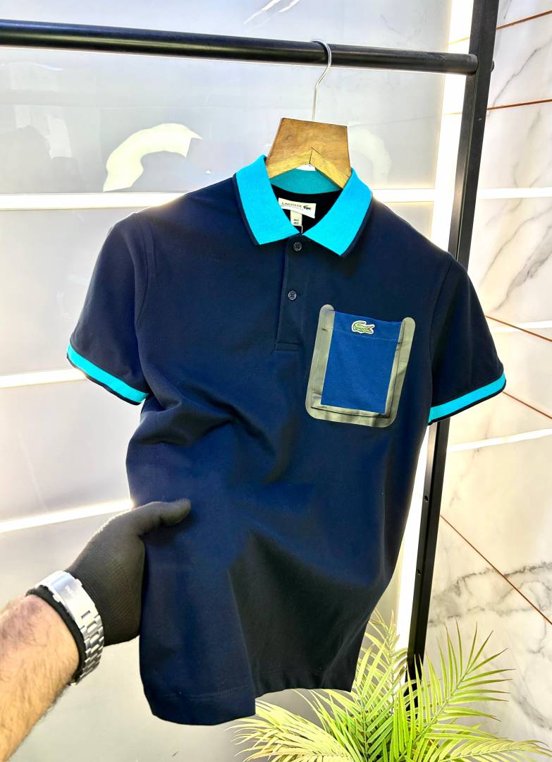 Sale Lacost e Navy Polo Premium Collar Neck T-shirt F2870-N2